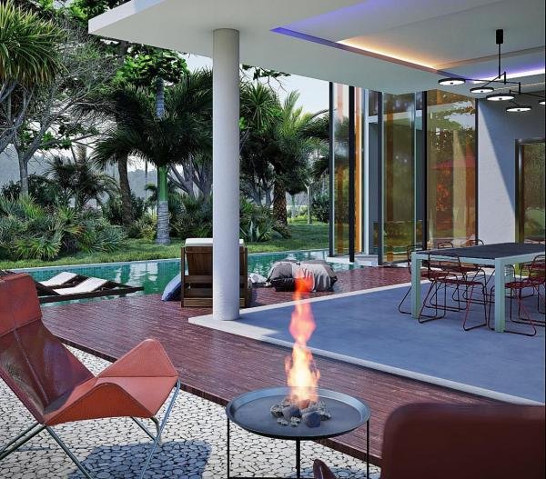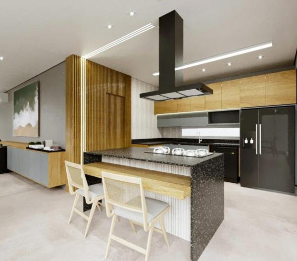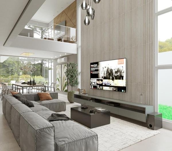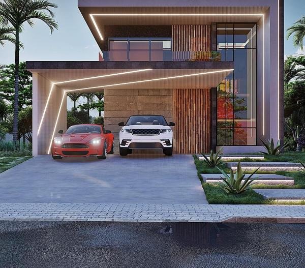 Casa ainda em obras com a seguinte descrição em projeto: No térreo 1 suíte, living para 3 ambientes, varanda, lavabo, cozinha americana, despensa, área de serviço, dormitório e banheiro de empregada, 2 vagas de garagem cobertas e 2 descobertas. No 1.o pavimento: 4 suítes, terraço, hidro, mezanino. Equipagem: piscina, ducha, espaço gourmet com churrasqueira. Área a ser construída: 362,84 m² em um Terreno de 481,16 m².