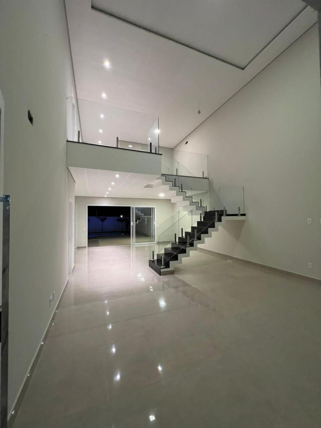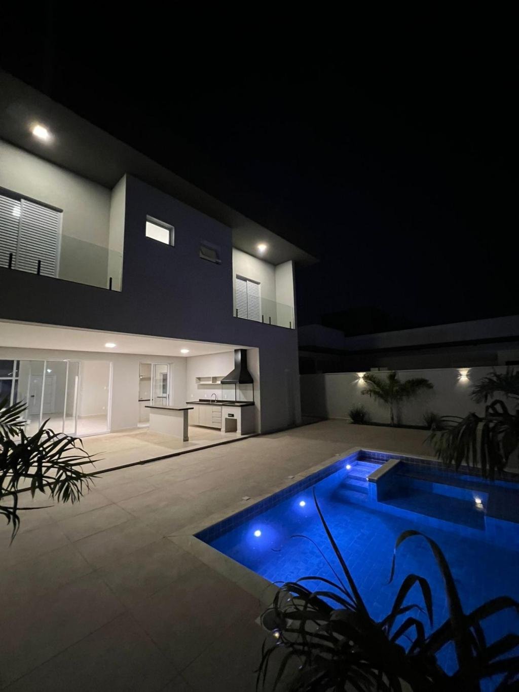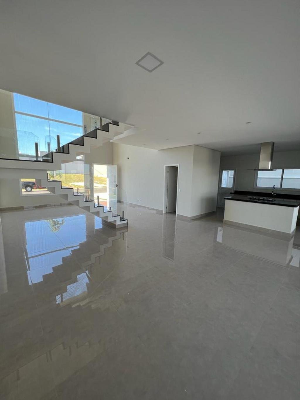 Maravilhosa casa localizada em Condomínio de Indaiatuba, nunca habitada, assobradada, com 3 suítes, living para 2 ambientes, sendo a sala de estar com pé direito duplo, escritório, lavabo, cozinha americana com armários - coifa - cooktop, área gourmet com armários, área de serviço, 1 WC social externo, 4 vagas de garagem, piscina com Spa e prainha, residência integrada e arejada, paisagismo diferenciado, iluminação em led, entrada em mosaico português, preparada para aquecimento solar e para ar-condicionado, acabamentos de primeira linha, área construída de 284,00 m2 em um terreno de 337,00 m2.