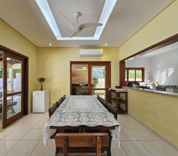 Linda casa localizada em rua larga, assobradada, com 5 dormitórios, sendo 3 suítes, uma delas para hóspedes, com armários embutidos e ar-condicionado, living para 3 ambientes, com ar-condicionado, 1 WC social, lavabo, cozinha americana, com armários, completa, dormitório e WC de empregada, área de serviço, 6 vagas de garagem, churrasqueira e forno de pizza à lenha, piscina aquecida, telhas tégula, trocador de calor, aquecedor solar, sistema fotovoltaico e boiler. Área construída de 320,00 m2 em um terreno de 540,16 m2.
