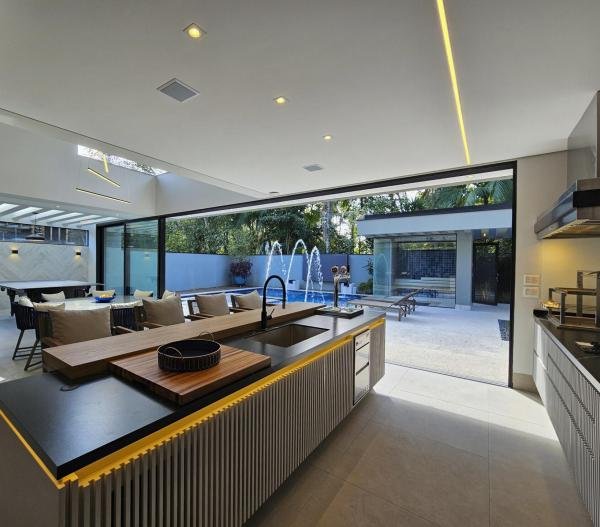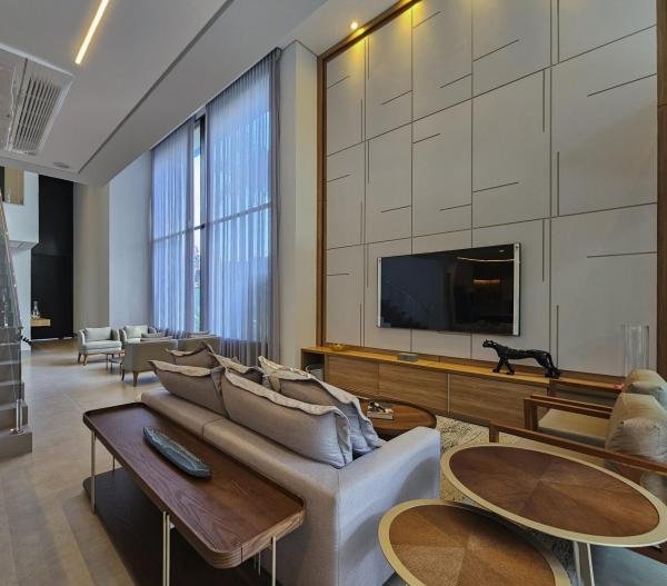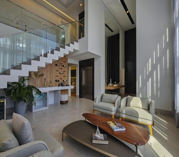 Exuberante mansão, situada no Módulo 17, com 3 pavimentos, mobiliada e finamente decorada, pé direito triplo, sua área construída é de 555,66 m2, em um terreno de 617,15 m2, a casa conta com 6 suítes, sendo 2 masters (Closet e Hidromassagem), com armários embutidos e ar-condicionado, elevador com máquina de tração, persianas automáticas, porta de entrada com fechadura eletrônica, adega, sala de TV com ar-condicionado, copa com cervejeira e microondas no 1º e 2º pavimento, área de bilhar e ping pong, carregador para carros elétricos e muito mais. Living para 2 ambientes amplos, com ar-condicionado, sistema de som, cozinha americana, com armários, completa, despensa, 2 lavabos e área de serviço. Sua magnífica área de lazer, conta com piscina integrada a sauna, cascata, prainha, telão na piscina, 1 WC social, praça de fogo no térreo e 2º pavimento, SPA para 7 pessoas, chopeira e churrasqueira. São 6 vagas de garagem, sendo 3 cobertas. Decorada com móveis de qualidade premium, uma sofisticação e requinte.