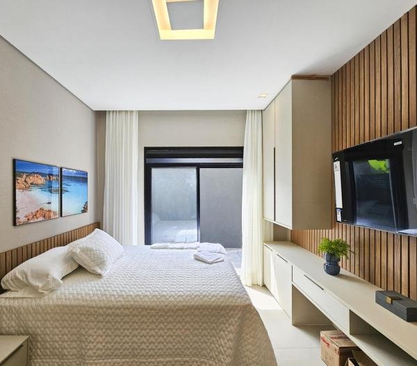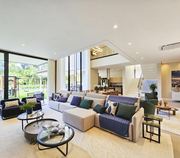 Majestosa e exuberante, é a definição para essa mansão, conta com 7 suítes, sendo uma no térreo, todas com armários embutidos e ar-condicionado, dentre elas, uma suíte master com closet e banheira (WCs Sr. e Sra), 2 pavimentos, living para 3 ambientes, com ar-condicionado, persianas automáticas, porta de entrada com fechadura eletrônica, lavabo, adega, cozinha americana, com armários, completa. Possui dormitório e WC de empregada, depósito, área de serviço, 6 vagas de garagem e uma copa no pavimento superior. Sua área de lazer oferece, piscina aquecida, climatizada e integrada com a sauna, jacuzzi, energia solar, churrasqueira e forno de pizza integrada com a cozinha, chopeira, playground, lavabo e sistema de monitoramento. A área construída é de 622,38 m2 em um terreno de 752,25 m2. A casa está toda mobiliada com móveis da kitchens, desde banheiros, quartos, cozinha e etc....Pisos e revestimentos da Portobello, bancadas em Dekton e metais Docol.