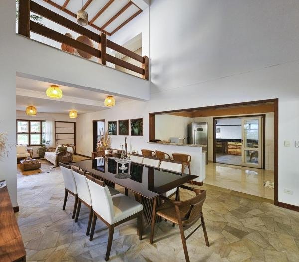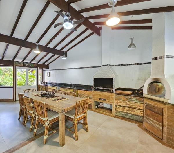 Belíssima casa assobradada, bem arejada, localizada em rua larga, contendo 4 suítes amplas, sendo uma no térreo, com ar-condicionado, living para 2 ambientes, lareira, sala de TV, lavabo, 4 vagas de garagem, cozinha americana, edícula, depósito, área de serviço, piscina com cascata, área gourmet com churrasqueira e forno a lenha. Sua área construída é de 339,20 m2 em um terreno grande de 576,67 m2.