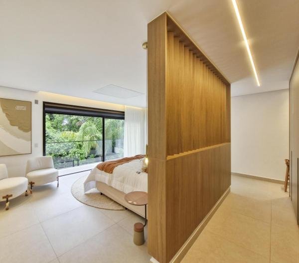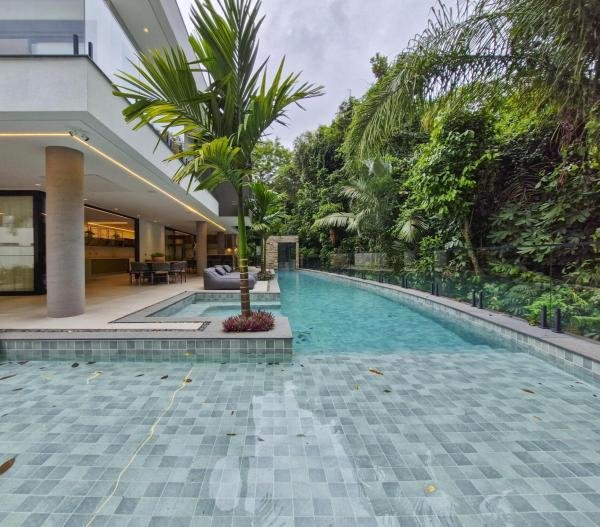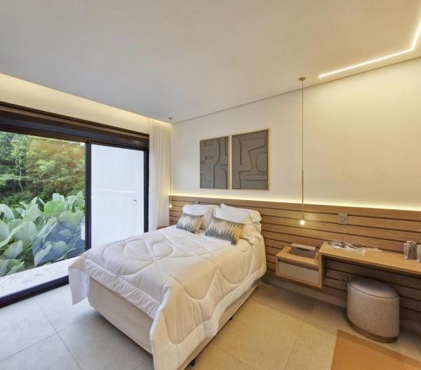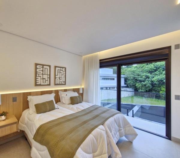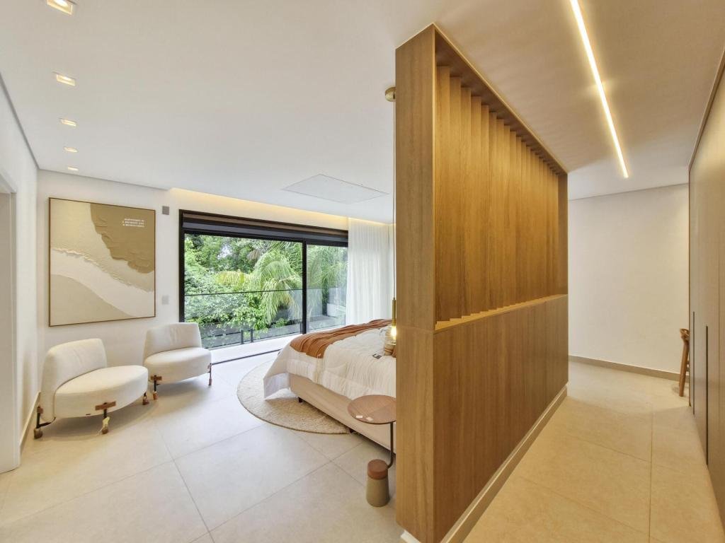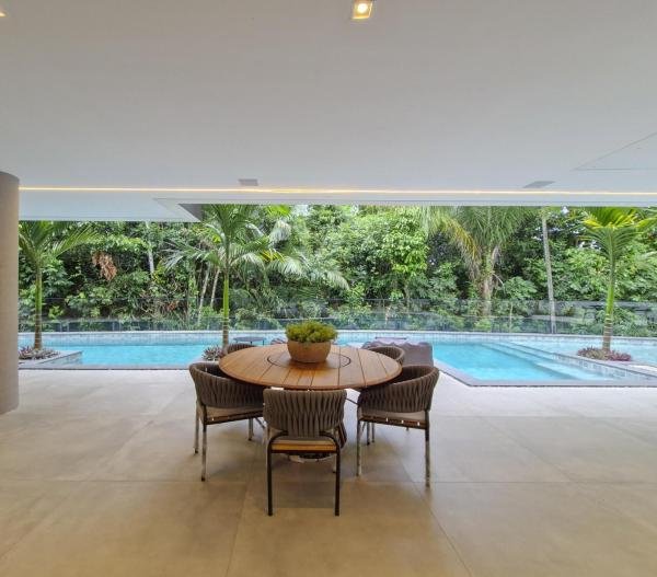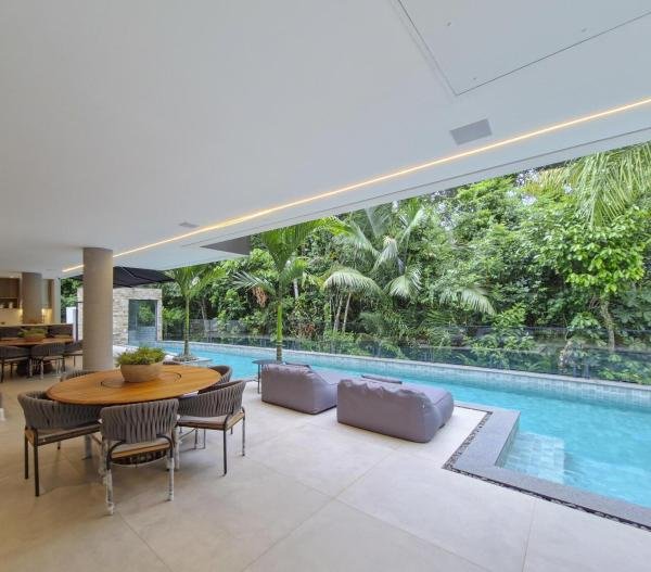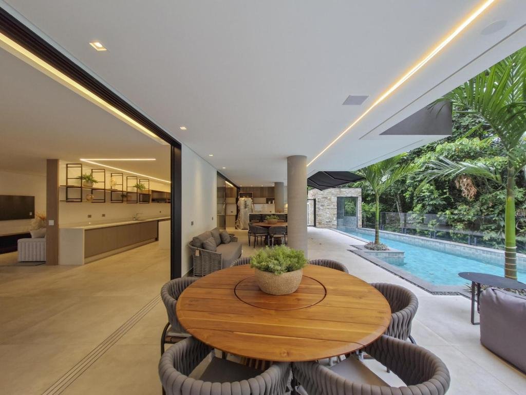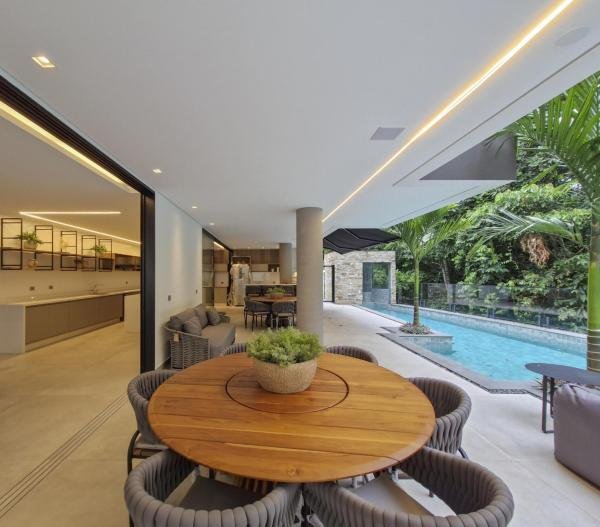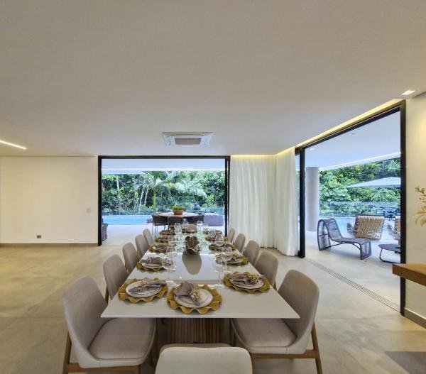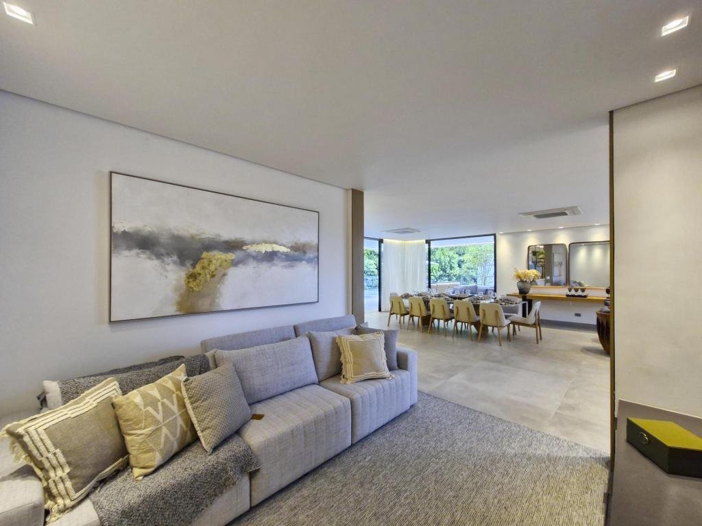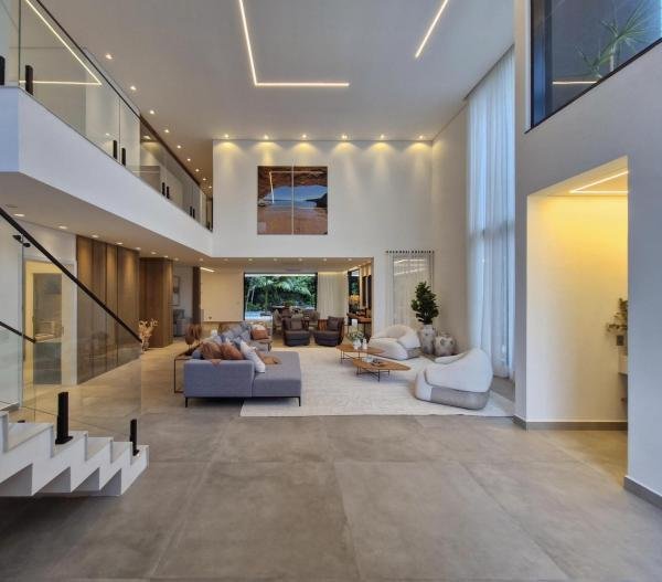 Esta residência extraordinária, nunca habitada, mobiliada e finamente decorada é o ápice do luxo e sofisticação, perfeita para quem deseja viver em grande estilo. Com 7 suítes espaçosas, sendo uma suíte no térreo com 19,00 m² é um diferencial bem-vindo. No entanto, a suíte master é um verdadeiro santuário: com banheira aquecida a gás para momentos de puro relaxamento, dois chuveiros de teto para um banho revigorante, duas elegantes pias e uma vista inspiradora para a área verde. Além disso, contém uma suíte de apoio para funcionários. Com equipamentos de alta qualidade, sistema de som JBL e sistema de monitoramento, a casa transborda segurança e exuberância. A área de lazer é espetacular, conta com uma prainha, spa, iluminação, climatizada, hidromassagem que integram a sua piscina aquecida de 96,75 m² que, por sua vez, remete a um resort. A casa ainda possui praça de fogo, energia solar fotovoltaica, churrasqueira e lavabo. Com 773,86 m² de terreno e 603,60 m² de área construída, a casa ainda oferece 4 vagas de garagem, sendo 2 cobertas. Diferenciais: Pergolado descoberto com 12,64 m² / Ar-condicionado Split LG / Hall de entrada / Sala de estar ampla com pé direito duplo de 6 metros / Cortina automática / Porta de entrada com ripado de alumínio na tonalidade de madeira / Fechadura eletrônica / Lavabo interno com iluminação natural / Cozinha americana com móveis planejados / Ilha e bancada área molhada e seca toda revestida com Dekton / Sala de TV / Sala de jantar com mesa ampla que acomoda 12 pessoas / Copa no pavimento superior com pia, microondas e frigobar / Todos esses ambientes bem climatizados por dois ar-condicionados cassete LG de 4 vias / Residência inteligente que funciona por meio de dispositivos que permitem a automação de tarefas rotineiras, como ligar o ar-condicionado ou colocar uma música para tocar, ou seja completa / Teto com iluminação em led / Sauna úmida revestida com pedra natural nas paredes externas / Solarium com espreguiçadeira e ducha / Churrasqueira com ilha revestida com Dekton, integrada com a cozinha / Mesa redonda para 6 pessoas / Flap tv / Lavabos (interno/externo) / Área de jardim / Espaço zen / Móveis planejados da Todeschini, desde banheiros, quartos, cozinha e área gourmet / Pisos e revestimentos da Portobello / Revestimento piscina: Pastilha Strufaldi 10x10cm / Eletrodomésticos: Electrolux / Metais: Docol / Calçada Frontal / Passeio - Revestido com mosaico português / Esquadrias de portas, janelas, painéis fixos: Material alumínio na cor preta.