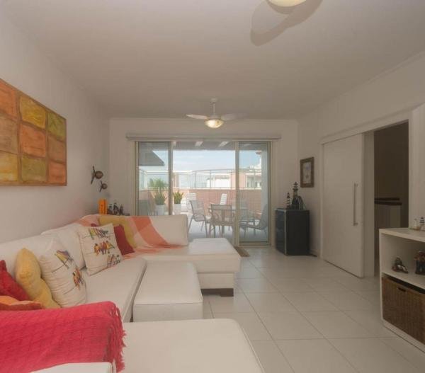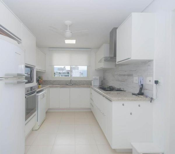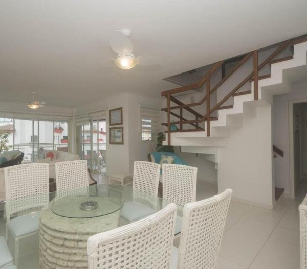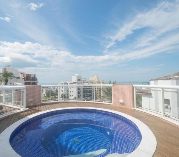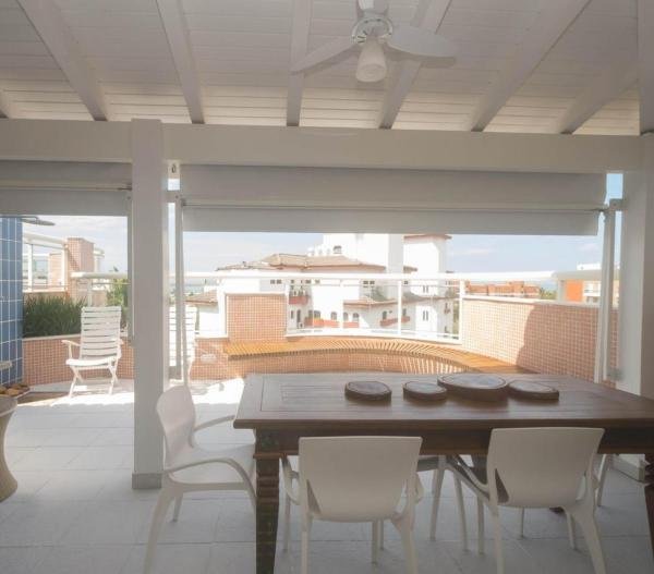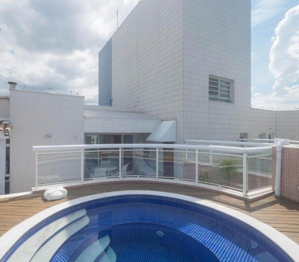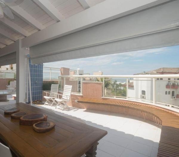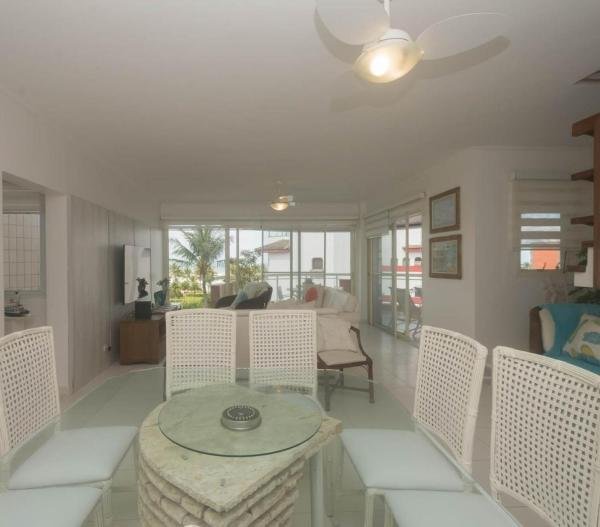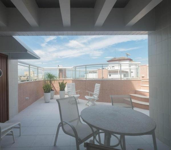 Cobertura duplex, pé na areia. Pav. tipo 3 dormitórios, sendo 1 suíte com armários embutidos, ar condicionado, lavabo, living p/ 2 ambientes, cozinha tradicional com armários, completa, área de serviço, dormitório e wc de empregada. Cobertura: 1 suíte, também com armário embutido e ar condicionado, cozinha, churrasqueira, piscina, sauna e ducha. Possui 3 vagas de garagem, área útil de 333,47 m2 e está mobiliado.
