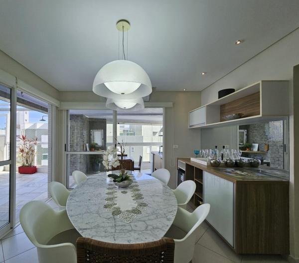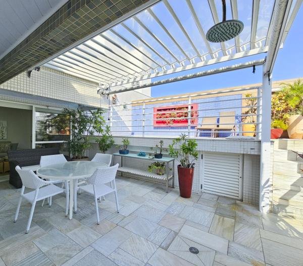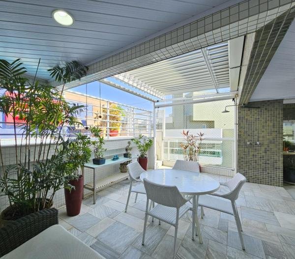 Luxuosa cobertura com vista para o mar, com saída para o clube compartilhado PE-17, contendo 5 suítes, sendo 1 reversível e 1 suíte no 5º andar, armários embutidos, cozinha tradicional, completa, living para 2 ambientes, todos os ambientes com ar-condicionado, lavabo, área de serviço, piscina, churrasqueira, 3 vagas de garagem e área útil de 192,92 m2. Mobiliada - retira objetos pessoais.