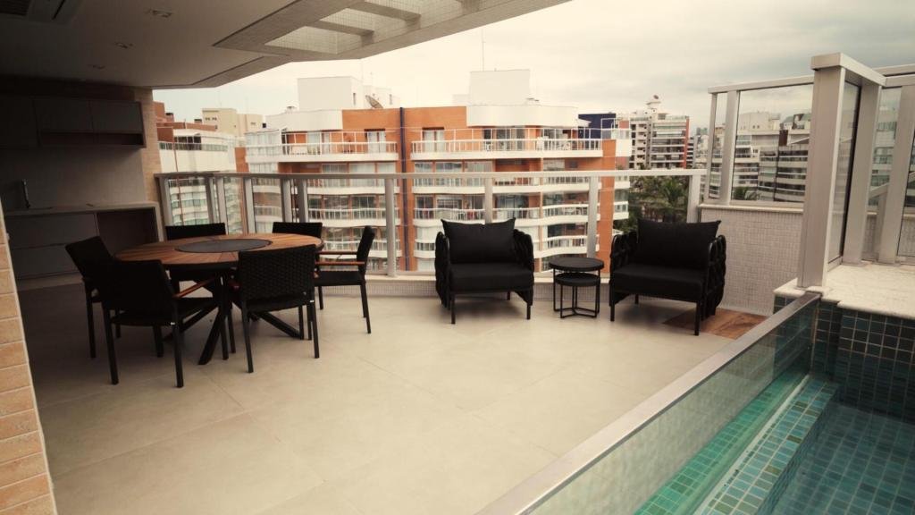 Descubra o privilégio de morar no topo com esta magnífica Cobertura na Riviera de São Lourenço. Um refúgio completo, com ambientes planejados para oferecer o máximo de conforto, privacidade e lazer. Com 242,10 m² de área útil, o imóvel oferece a sensação de morar em uma casa, com a segurança e a vista privilegiada de uma cobertura. A área íntima dispõe de 4 dormitórios, sendo 3 suítes, todos equipados com armários embutidos e ar-condicionado, garantindo o bem-estar em todas as estações. O apartamento ainda conta com 1 WC social e uma prática área de serviço. O living é amplo, ideal para 2 ambientes, e possui ar-condicionado para o seu conforto. A moderna Cozinha Americana é completa, perfeita para o preparo de refeições e integrada ao espaço social. A comodidade se estende com lavabos interno e externo. O ponto alto é a área externa privativa, que garante momentos de lazer inesquecíveis: Piscina Privativa: Para refrescar-se com total privacidade e uma vista única. Churrasqueira: Área gourmet completa para receber amigos e familiares. Para sua tranquilidade, a cobertura oferece 3 vagas de garagem cobertas. Esta é a oportunidade de unir espaço, conforto e lazer em um único lugar na Riviera. Entre em contato e agende sua visita!