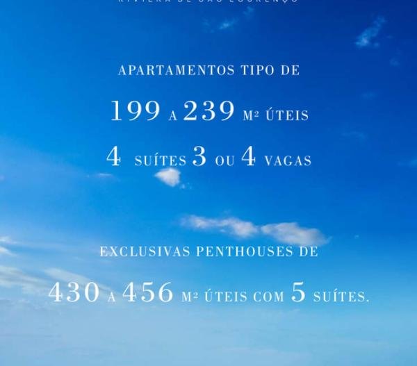 Acordar e abraçar o mar. É isso que este apartamento pé na areia, de tirar o fôlego, oferece no Módulo 3 da Riviera de São Lourenço. A unidade à venda conta com possibilidades infinitas de exuberância e bem-estar. São 208,45 m² de área útil, 4 suítes, infraestrutura completa para instalação de ar-condicionado, amplo terraço com uma vista incrível para o mar e 3 vagas de garagem. O esplendoroso empreendimento conta também com área de lazer completa para desfrutar o melhor da vida e aproveitar momentos relaxantes. Diferenciais 4 Suítes | 3 Vagas | Piscina Adulto com borda infinita | Piscina Infantil com solarium | Playground | Sauna | Espaço Gourmet | Brinquedoteca | Sala de jogos (Mezanino) | Fitness (Mezanino).