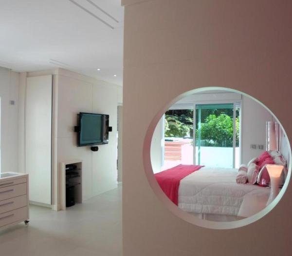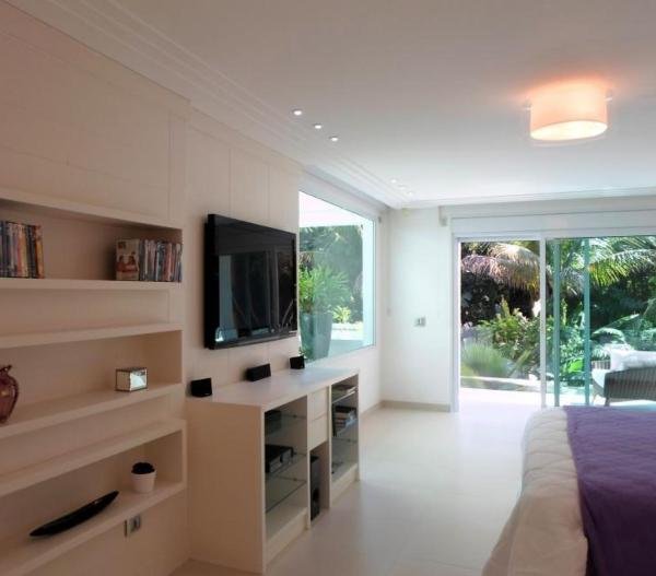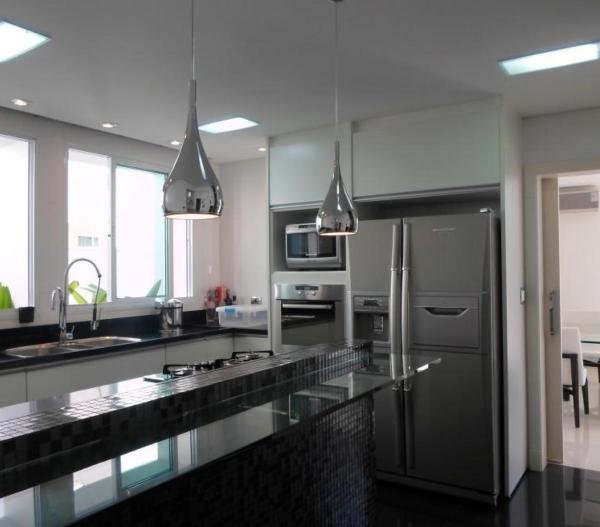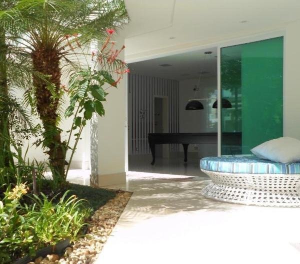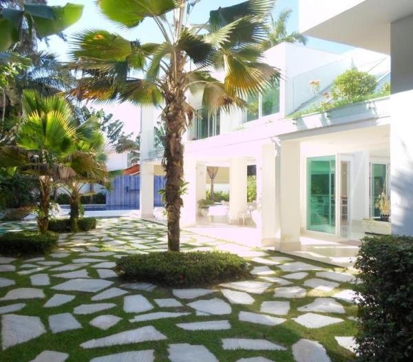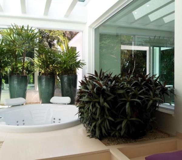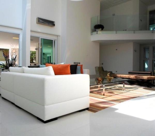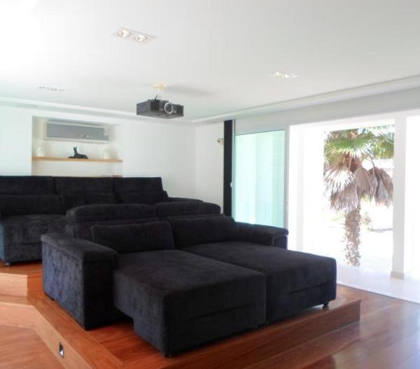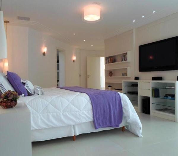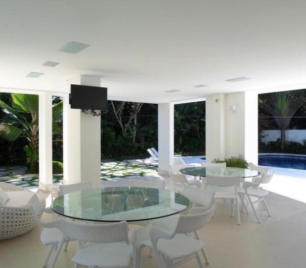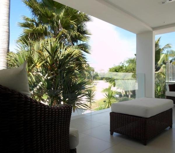 Casa de alto padrão, num terreno de 1.191,40 m2. São dois pavimentos, sendo 6 suítes (2 delas master com hidro), todas com armários embutidos de primeira linha, ar-condicionado, terraço, living p/ 3 ambientes com decoração esmerada, lavabo, cozinha tradicional com armários completa, depósito, área de serviço, dormitório e wc de empregada, linda varanda gourmet com churrasqueira e forno a lenha, próxima a piscina e com vista para área verde, 6 vagas de garagem, área útil de 943,70 m2. Equipagem: piscina, sauna úmida (contendo wc masculino e feminino) ducha, parabólica, sala de jogos, sala de cinema com home theater, jacuzzi, sensor de alarme infravermelho, piscina aquecida.
