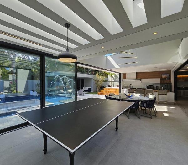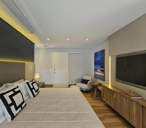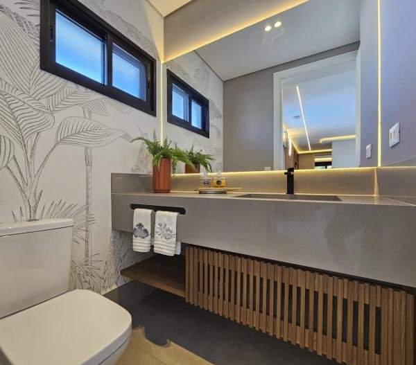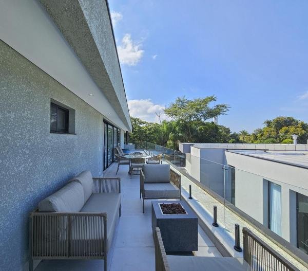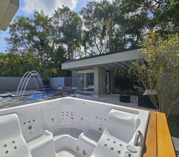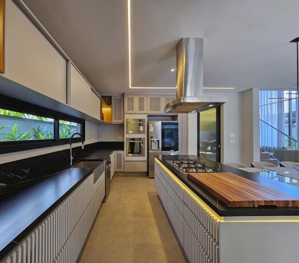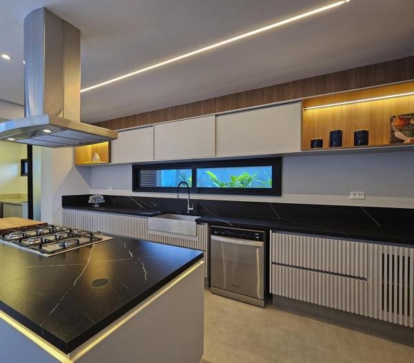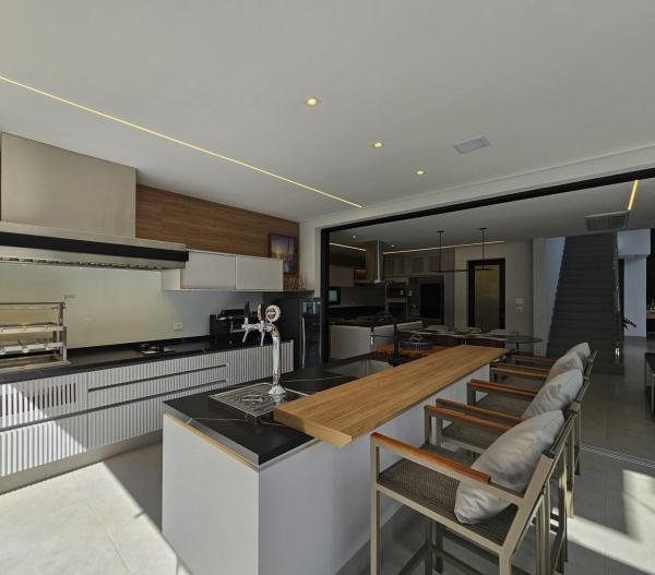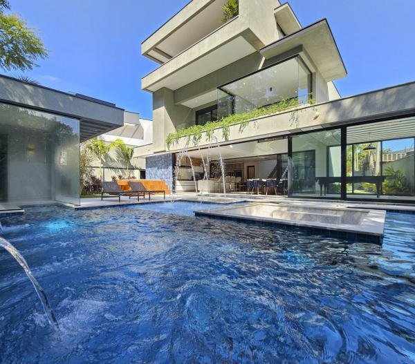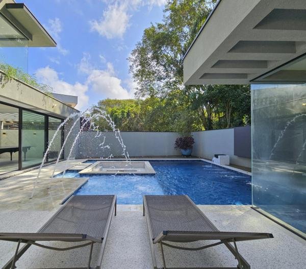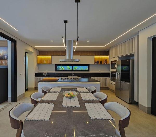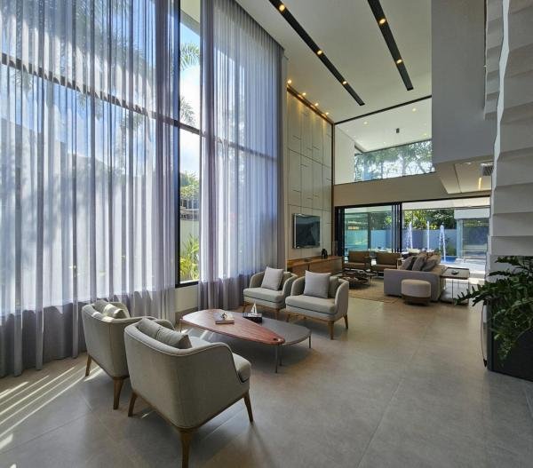 Exuberante mansão, situada no Módulo 17, com 3 pavimentos, mobiliada e finamente decorada, pé direito triplo, sua área construída é de 555,66 m2, em um terreno de 617,15 m2, a casa conta com 6 suítes, sendo 2 masters (Closet e Hidromassagem), com armários embutidos e ar-condicionado, elevador com máquina de tração, persianas automáticas, porta de entrada com fechadura eletrônica, adega, sala de TV com ar-condicionado, copa com cervejeira e microondas no 1º e 2º pavimento, área de bilhar e ping pong, carregador para carros elétricos e muito mais. Living para 2 ambientes amplos, com ar-condicionado, sistema de som, cozinha americana, com armários, completa, despensa, 2 lavabos e área de serviço. Sua magnífica área de lazer, conta com piscina integrada a sauna, cascata, prainha, telão na piscina, 1 WC social, praça de fogo no térreo e 2º pavimento, SPA para 7 pessoas, chopeira e churrasqueira. São 6 vagas de garagem, sendo 3 cobertas. Decorada com móveis de qualidade premium, uma sofisticação e requinte.