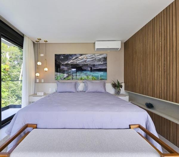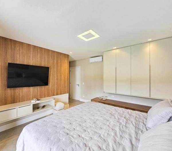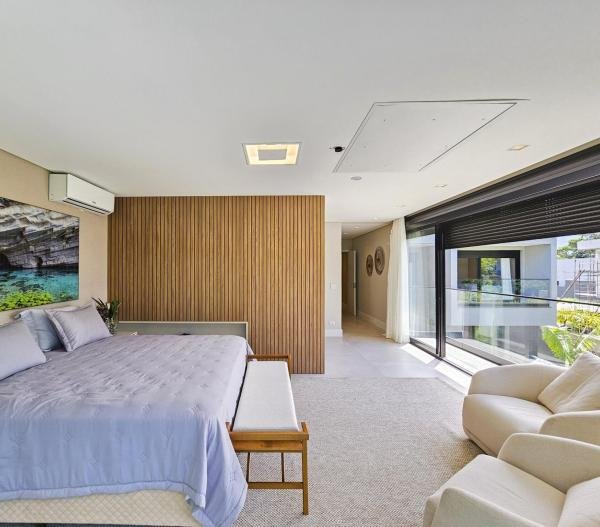 Majestosa e exuberante, é a definição para essa mansão, conta com 7 suítes, sendo uma no térreo, todas com armários embutidos e ar-condicionado, dentre elas, uma suíte master com closet e banheira (WCs Sr. e Sra), 2 pavimentos, living para 3 ambientes, com ar-condicionado, persianas automáticas, porta de entrada com fechadura eletrônica, lavabo, adega, cozinha americana, com armários, completa. Possui dormitório e WC de empregada, depósito, área de serviço, 6 vagas de garagem e uma copa no pavimento superior. Sua área de lazer oferece, piscina aquecida, climatizada e integrada com a sauna, jacuzzi, energia solar, churrasqueira e forno de pizza integrada com a cozinha, chopeira, playground, lavabo e sistema de monitoramento. A área construída é de 622,38 m2 em um terreno de 752,25 m2. A casa está toda mobiliada com móveis da kitchens, desde banheiros, quartos, cozinha e etc....Pisos e revestimentos da Portobello, bancadas em Dekton e metais Docol.