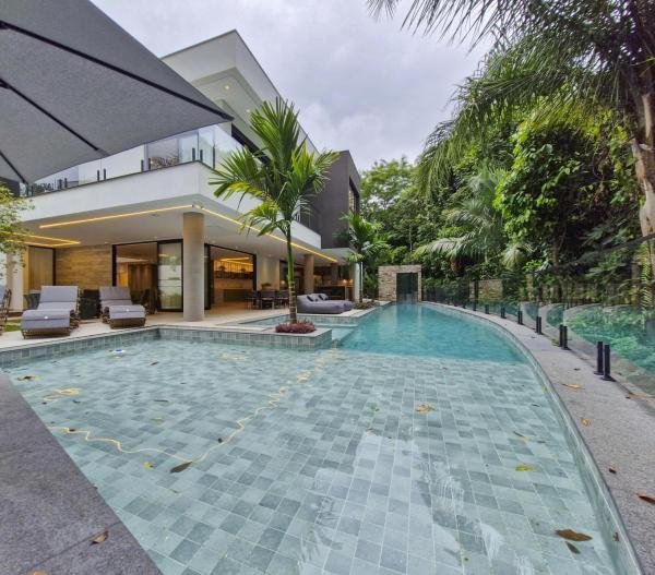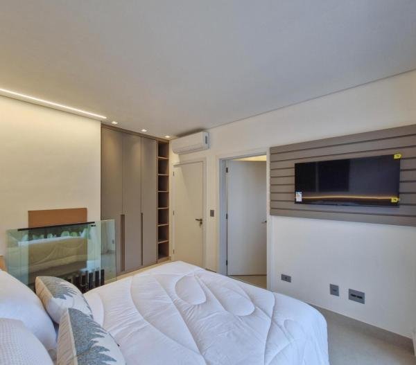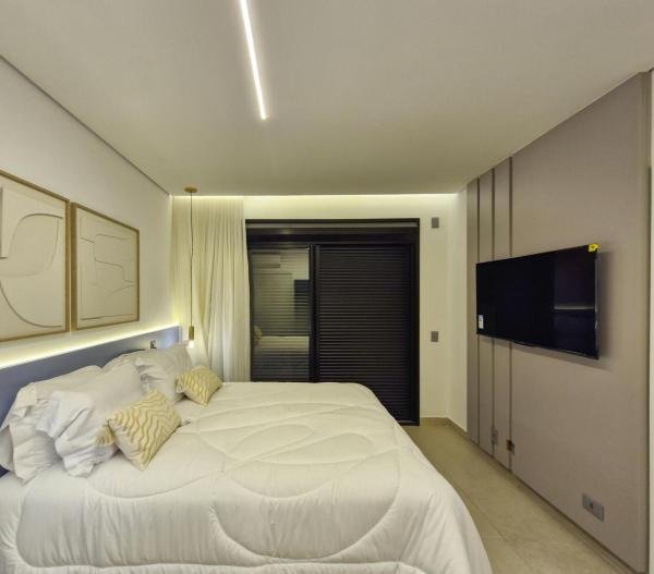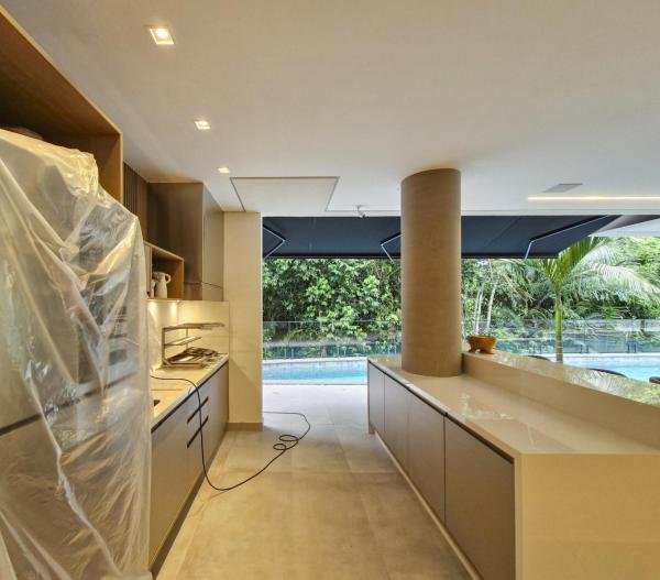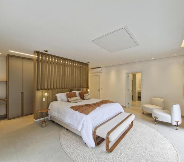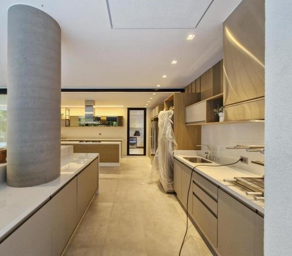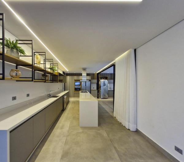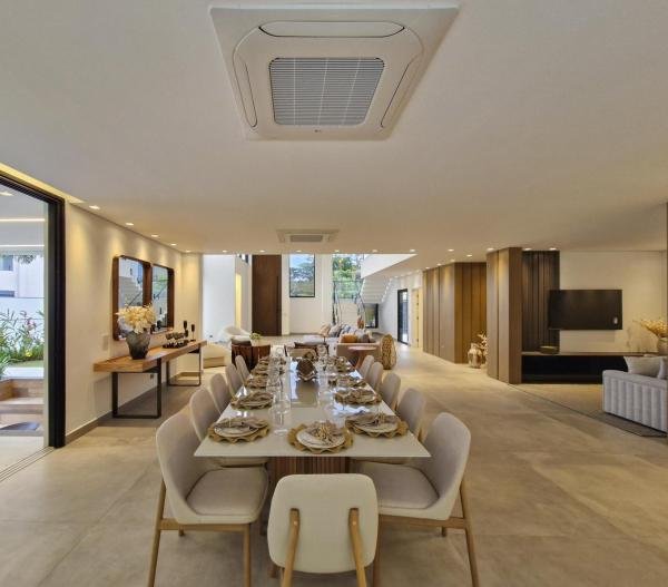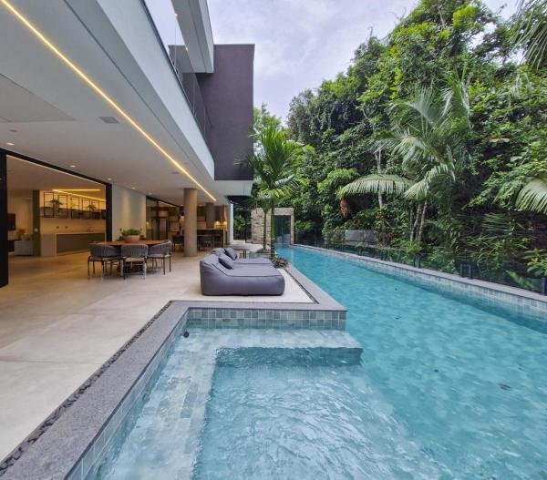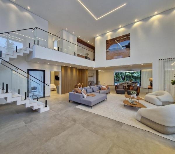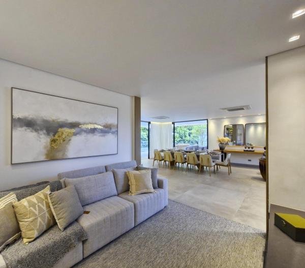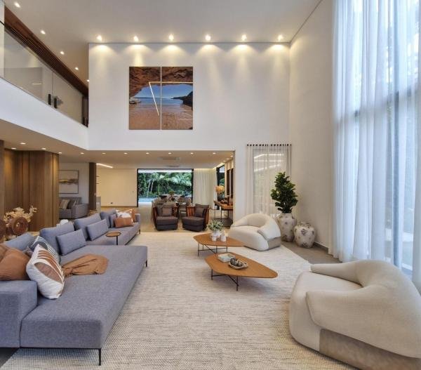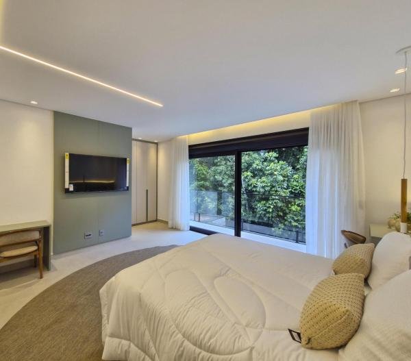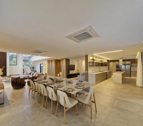 Esta residência extraordinária, nunca habitada, mobiliada e finamente decorada é o ápice do luxo e sofisticação, perfeita para quem deseja viver em grande estilo. Com 7 suítes espaçosas, sendo uma suíte no térreo com 19,00 m² é um diferencial bem-vindo. No entanto, a suíte master é um verdadeiro santuário: com banheira aquecida a gás para momentos de puro relaxamento, dois chuveiros de teto para um banho revigorante, duas elegantes pias e uma vista inspiradora para a área verde. Além disso, contém uma suíte de apoio para funcionários. Com equipamentos de alta qualidade, sistema de som JBL e sistema de monitoramento, a casa transborda segurança e exuberância. A área de lazer é espetacular, conta com uma prainha, spa, iluminação, climatizada, hidromassagem que integram a sua piscina aquecida de 96,75 m² que, por sua vez, remete a um resort. A casa ainda possui praça de fogo, energia solar fotovoltaica, churrasqueira e lavabo. Com 773,86 m² de terreno e 603,60 m² de área construída, a casa ainda oferece 4 vagas de garagem, sendo 2 cobertas. Diferenciais: Pergolado descoberto com 12,64 m² / Ar-condicionado Split LG / Hall de entrada / Sala de estar ampla com pé direito duplo de 6 metros / Cortina automática / Porta de entrada com ripado de alumínio na tonalidade de madeira / Fechadura eletrônica / Lavabo interno com iluminação natural / Cozinha americana com móveis planejados / Ilha e bancada área molhada e seca toda revestida com Dekton / Sala de TV / Sala de jantar com mesa ampla que acomoda 12 pessoas / Copa no pavimento superior com pia, microondas e frigobar / Todos esses ambientes bem climatizados por dois ar-condicionados cassete LG de 4 vias / Residência inteligente que funciona por meio de dispositivos que permitem a automação de tarefas rotineiras, como ligar o ar-condicionado ou colocar uma música para tocar, ou seja completa / Teto com iluminação em led / Sauna úmida revestida com pedra natural nas paredes externas / Solarium com espreguiçadeira e ducha / Churrasqueira com ilha revestida com Dekton, integrada com a cozinha / Mesa redonda para 6 pessoas / Flap tv / Lavabos (interno/externo) / Área de jardim / Espaço zen / Móveis planejados da Todeschini, desde banheiros, quartos, cozinha e área gourmet / Pisos e revestimentos da Portobello / Revestimento piscina: Pastilha Strufaldi 10x10cm / Eletrodomésticos: Electrolux / Metais: Docol / Calçada Frontal / Passeio - Revestido com mosaico português / Esquadrias de portas, janelas, painéis fixos: Material alumínio na cor preta.