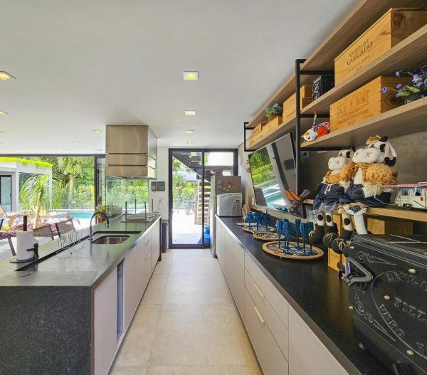 Casa altamente luxuosa e minimalista. Localizada em um dos mais prestigiados módulos, esta deslumbrante residência minimalista oferece uma exclusividade sem igual. Com um design arrojado, esta propriedade oferece o equilíbrio perfeito entre luxo e simplicidade. Com 06 suítes elegantemente decoradas, com armários embutidos e ar-condicionado, cada uma com seu próprio toque de requinte, os hóspedes são recebidos em um ambiente de sofisticação e conforto. Os amplos espaços comuns fluem harmoniosamente, proporcionando um ambiente acolhedor para entretenimento ou relaxamento. A integração perfeita entre os interiores e exteriores permite que os moradores desfrutem da serenidade natural do entorno, enquanto desfrutam de todas as comodidades modernas. Esta casa é verdadeiramente um refúgio exclusivo para aqueles que buscam o melhor em estilo de vida contemporâneo. Seja para apreciar a tranquilidade deste oásis, esta casa representa o pináculo do luxo discreto. São 3 pavimentos, churrasqueira, home theater, sauna, praça de fogo, sala de TV e jogos, piscina aquecida, com cascata e hidromassagem, carregador para carros elétricos. Sua área construída é de 463,81 m, em um terreno de 481,00 m² e possui acesso para a PE-12 privativa.