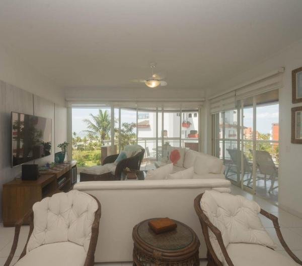 Cobertura duplex, pé na areia. Pav. tipo 3 dormitórios, sendo 1 suíte com armários embutidos, ar condicionado, lavabo, living p/ 2 ambientes, cozinha tradicional com armários, completa, área de serviço, dormitório e wc de empregada. Cobertura: 1 suíte, também com armário embutido e ar condicionado, cozinha, churrasqueira, piscina, sauna e ducha. Possui 3 vagas de garagem, área útil de 333,47 m2 e está mobiliado.