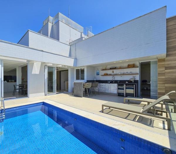 Apresentamos a cobertura dos seus sonhos, extremamente exclusiva, onde o luxo encontra conforto em um cenário deslumbrante. Localizada em um dos módulos mais desejados da Riviera de São Lourenço, ela oferece uma piscina privativa, varanda gourmet, integradas à cozinha, ideal para receber amigos e familiares em um só lugar. São 300,74 metros quadrados de área útil, contendo 3 suítes, cada uma planejada cuidadosamente para proporcionar o máximo de privacidade e relaxar ao som das ondas. Possui também uma brinquedoteca, podendo reverter para a quarta suíte, de acordo com a planta original. Além de conter um dormitório ou depósito no 5º andar. Com o seu living amplo para dois ambientes e acabamentos de alta qualidade que valorizam ainda mais o ambiente sofisticado e sua vista impecável para o mar. Ar-condicionado, fechamento em vidro na sacada, persianas automáticas, sistema de monitoramento, vista para a serra e mar, cozinha americana completa e 3 vagas cobertas são outros benefícios presentes no imóvel. O edifício complementa o luxo da cobertura com uma infraestrutura de lazer completa, destacando-se as piscinas para adultos e crianças, home cinema e churrasqueira com forno de pizza, ideal para momentos de relaxamento e diversão em família. Viva a experiência de morar em uma cobertura penthouse que não só atende, mas supera todas as expectativas, a poucos passos do mar. Situada em um dos destinos mais cobiçados do Brasil, a Riviera de São Lourenço é um verdadeiro paraíso à beira-mar. Aqui, você terá acesso direto à praia, permitindo que você desfrute da areia macia e do mar cristalino sempre que desejar. Além disso, a Riviera oferece uma infraestrutura completa de lazer e segurança.